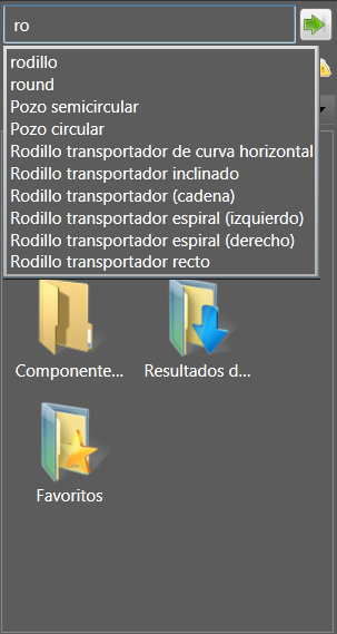 Después de realizar una búsqueda, se añade una carpeta de resultados de la búsqueda al explorador de componentes. La carpeta contiene el componente encontrado. El componente permanece en la carpeta hasta que se lleva a cabo la búsqueda siguiente y se reemplaza con el nuevo resultado de la búsqueda. Un componente se puede seleccionar desde la carpeta de resultados de la búsqueda y se puede colocar en el layout de la fábrica.