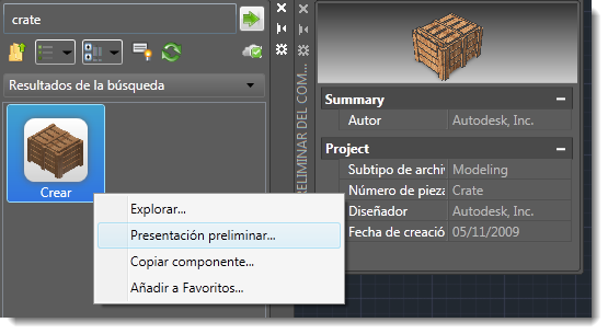 - Haga clic con el botón derecho en la imagen en miniatura del explorador y haga clic en Vista preliminar en el menú contextual emergente para ver el componente en la ventana Vista preliminar.