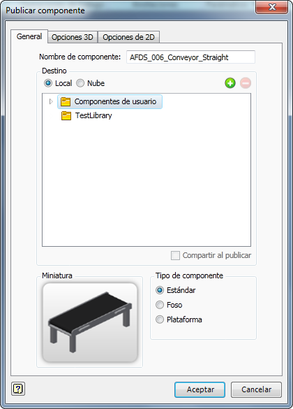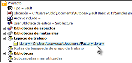 Los nuevos componentes de la fábrica que se creen y se publiquen se pueden añadir ahora directamente a la carpeta Biblioteca. Para obtener más información acerca de los proyectos de Inventor, consulte la Ayuda de Inventor.