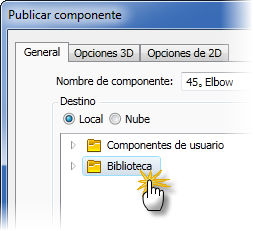 Una Biblioteca de proyecto es una carpeta que contiene piezas normalizadas utilizadas frecuentemente a las que se hace referencia, pero que no se modifican como parte de un proyecto. Las bibliotecas de proyecto suelen contener piezas estándar, tales como fiadores, juntas tóricas, presillas, componentes eléctricos, etc. Puede crear sus propios componentes de la fábrica y almacenarlos en una carpeta de biblioteca de proyecto designada especialmente, ya sea en el equipo local o en una red para compartirlos con otros usuarios.