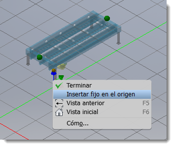 Un nuevo comando Insertar fijo en el origen de Inventor coloca y fija un modelo en el origen del layout (0,0,0). Al colocar un componente, haga clic con el botón derecho del ratón para acceder al comando desde el menú contextual.