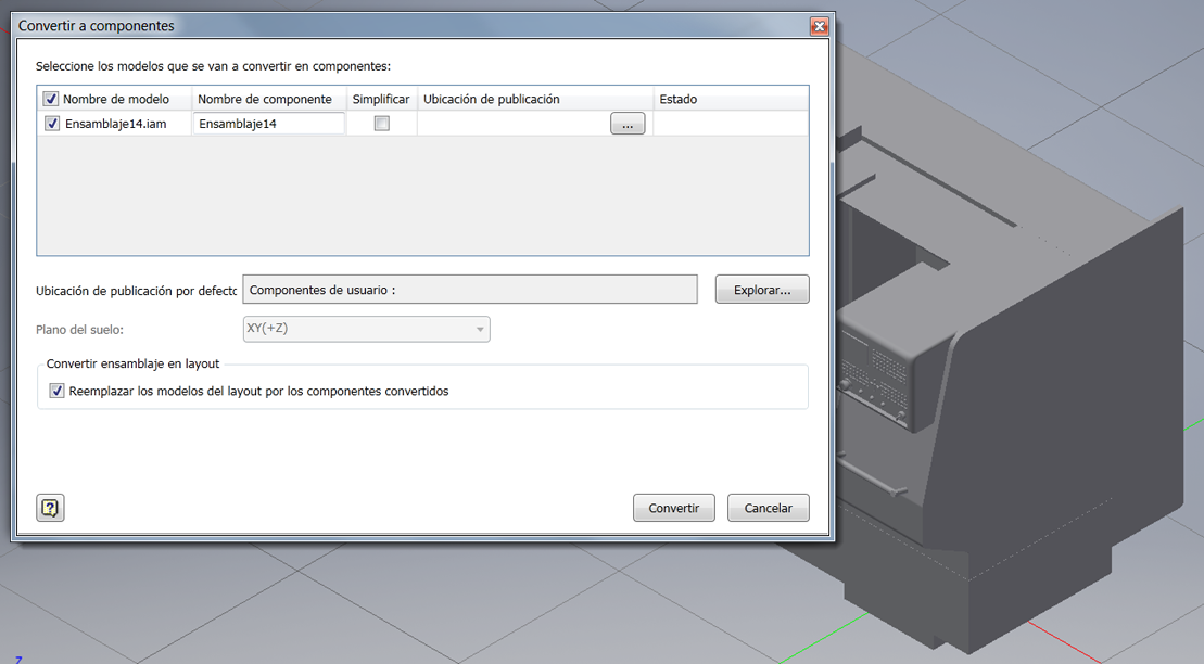 Inventor Factory: Conversión de componentes de ensamblaje en componentes