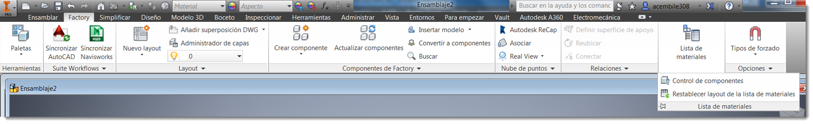 En la ficha Componentes de Opciones de Factory, se puede activar o desactivar la función Lista de materiales que expone los datos del parámetro clave como una iProperty. Si esta opción está activada, todos los parámetros clave se resumen en una sola iProperty denominada Parámetros clave.