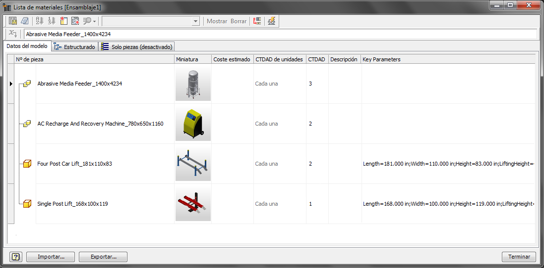 Seleccione Aplicar parámetros clave para ver y ordenar componentes de aspecto similar en la lista de materiales.
