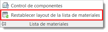 Puede modificar libremente el formato de la lista de materiales mediante la reordenación, adición y eliminación de columnas. Para volver al formato por defecto, seleccione Restablecer layout de la lista de materiales.