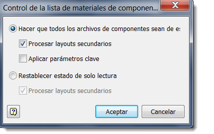 Puede elegir que los archivos de Inventor sean de escritura para poder editar la lista de materiales. También puede procesar archivos de layouts secundarios de la lista de materiales en un layout principal.
