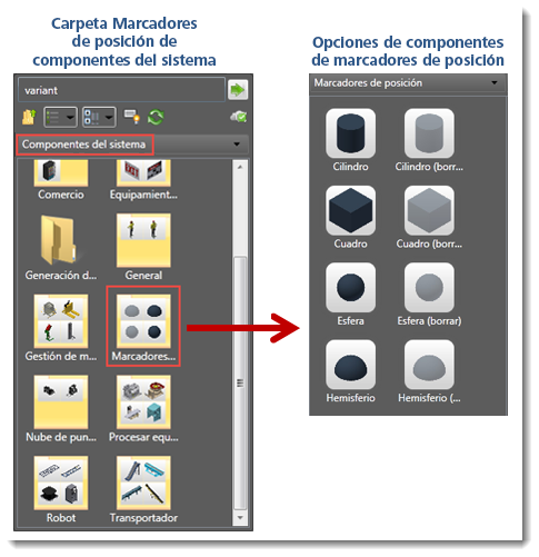 Un componente de marcador de posición por defecto se instala con Factory Design Suite y se almacena en una nueva carpeta de componentes del sistema denominada Marcadores de posición.
