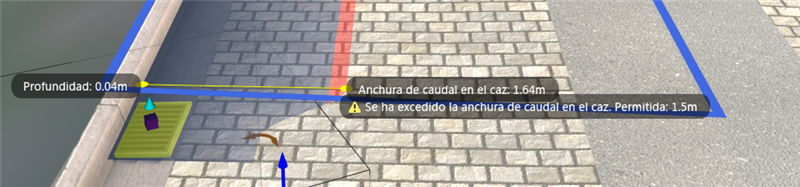 El análisis del tragante se lleva a cabo en tiempo real, mientras se trabaja. Al desplazar un tragante o al ajustar su tamaño o material, el análisis refleja estos cambios en el lienzo y en la tarjeta de recursos.