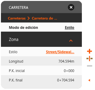 - Arrastre cada barra deslizante a lo largo de la carretera para ajustar los puntos de inicio y fin de la zona a la que se aplica el estilo.