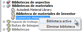 - Para convertir la nueva biblioteca en la biblioteca activa, la primera que se busca o se utiliza como referencia, pulse el nodo con el botón derecho del ratón y seleccione Biblioteca activa.
