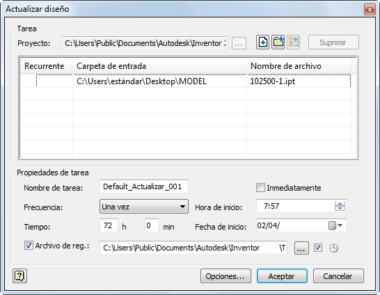 - Autodesk Inventor debe disponer de una autorización del sistema antes de ejecutar el Programador de tareas.
