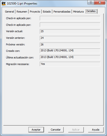Inventor puede comprobar el estado de la migración de un archivo mediante iProperties.