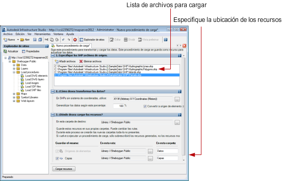 Se muestra un nuevo procedimiento de carga a la derecha del Explorador de sitios. Contiene una lista de los archivos que se van a cargar. Puede arrastrar otros archivos a este procedimiento de carga.