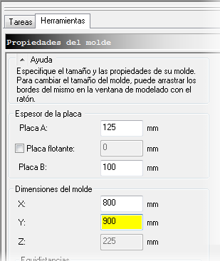 En esta tarea definirá el tamaño del molde. El espesor de la placa "A" determina la longitud del bebedero.