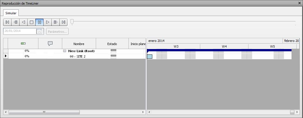 En la ventana Reproducción de TimeLiner, la ficha Simular permite simular la secuencia de TimeLiner a lo largo de toda la programación del proyecto.