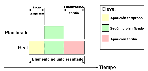 Área Vista. Cada vista reproducirá la programación representando las relaciones entre las fechas planeadas y las reales: