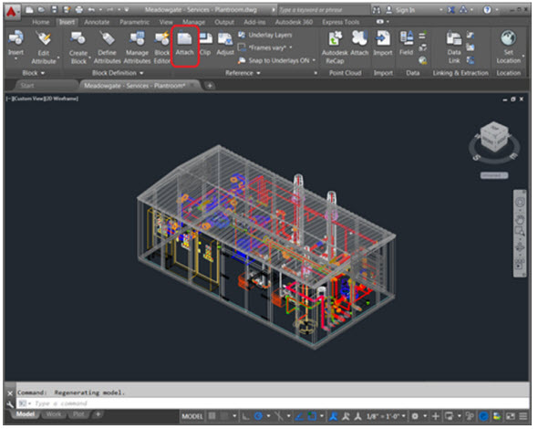 Los primeros consumidores de esto son el equipo de AutoCAD, pero puede probar esta nueva función en las aplicaciones basadas en AutoCAD 2016. Mediante el comando ATTACH de AutoCAD, puede buscar y seleccionar su modelo de coordinación, tanto en formato NWD como NWC, y verlo dentro de AutoCAD, como cualquier otro archivo de referencia.