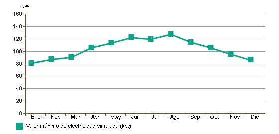 Al revisar un análisis energético en el cuadro de diálogo Resultados y comparación, este diagrama muestra la estimación de demanda máxima de electricidad por mes del proyecto.