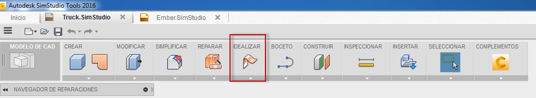 Todos los comandos que se muestran aquí se encuentran en el grupo IDEALIZE.