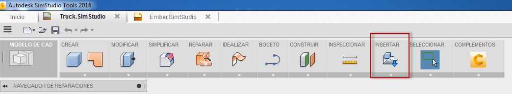 Insertar malla para importar cuerpos de malla desde un archivo OBJ o STL.