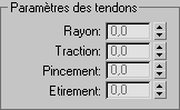 Les commandes des sous-objets Tendon sont regroupées dans le panneau déroulant Tendons.