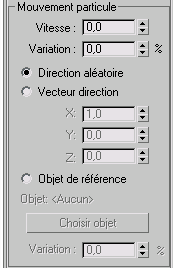 VariationApplique un pourcentage de variation à la direction lorsque vous choisissez l'option Vecteur direction ou Objet de référence. Cette double flèche n'est pas disponible et reste sans effet lorsque vous choisissez Direction aléatoire.