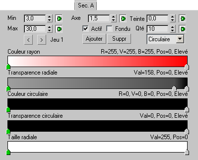 Vous pouvez créer des ensembles d'éléments secondaires ayant les mêmes paramètres au lieu de les créer un par un. La plupart des commandes de l'onglet Sec. A s'appliquent à des ensembles individuels d'éléments et non à tous les ensembles.