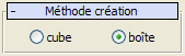 Le panneau déroulant Méthode création associé à la déformation spatiale à champ vectoriel permet de préciser si le champ vecteur sera créé à l'aide d'un cube ou d'une boîte.