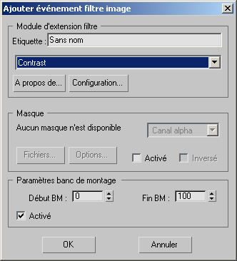 Les boîtes de dialogue Ajouter événement filtre image et Editer événement filtre présentent les mêmes commandes.