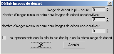 Character studio affecte la même image de départ à tous les représentants ayant les mêmes paramètres de priorité. Lorsque cette option est désactivée, character studio rend aléatoire l'ordre des images de départ des représentants ayant la même priorité. Valeur par défaut : activé.
