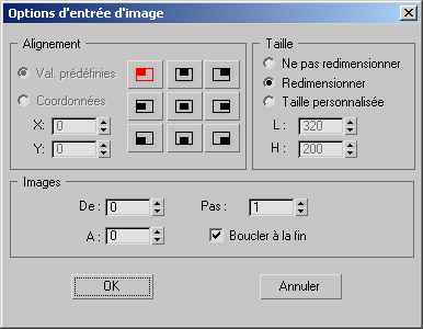 Pour aligner l'image en entrée, procédez de l'une des manières suivantes dans la boîte de dialogue Options d'entrée d'image :