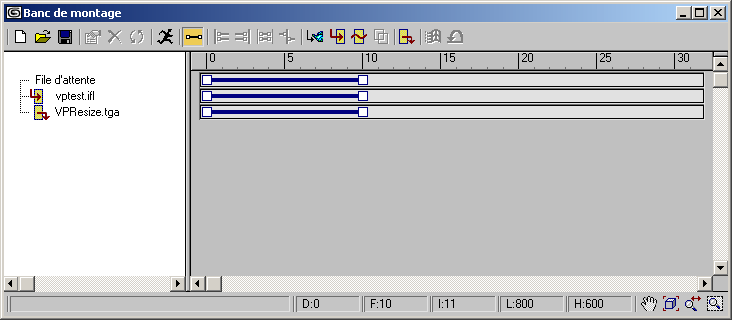 Un autre processus courant pour lequel le banc de montage est utilisé consiste à convertir une série de rendus sous forme d'images en animation. Pour réaliser cette tâche, vous devrez utiliser un fichier IFL.