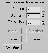 - Activez cette option pour sélectionner et éditer des coupes afin de " gonfler " le maillage. Les commandes Insérer, Supprimer, Copier, Coller et Symétrie sont activées pour les coupes.