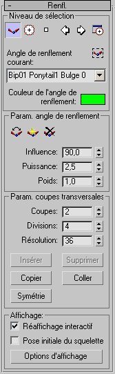 Les commandes du niveau de sous-objet Renflement sont regroupées dans le panneau déroulant Renflement.