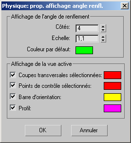 Cette boîte de dialogue vous permet de personnaliser la façon dont Physique affiche les angles de renflement au niveau de sous-objet Renflement.