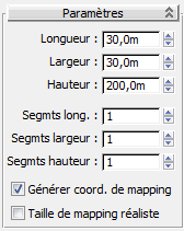 panneau déroulant Paramètres, définissez les paramètres de la boîte de la façon suivante : - Longueur = 30,0 m
