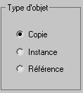 - Dans la zone Type Of Object (Type d'objet), sélectionnez Copy (Copier). Utilisez la Copy (Copie) plutôt que l'Instance (Instance) parce que l'un des objets du réseau sera redimensionné à une hauteur différente des autres.