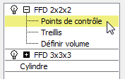 (signe plus) pour ouvrir l'arborescence du modificateur FFD 2x2x2. Cliquez sur Points de contrôle pour mettre ce niveau sous-objet en surbrillance.