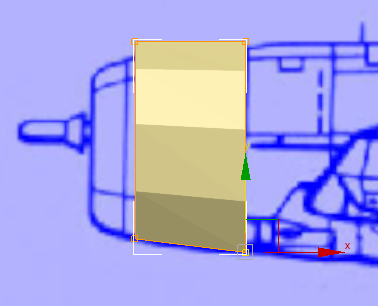 - Effectuez cette opération dans la fenêtre Perspective, mais observez votre travail dans la fenêtre Face : faites glisser le curseur vers le haut pour extruder le polygone sélectionné jusqu'à l'avant de l'avion.