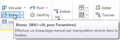 L'outil Biseau possède deux fonctions : il extrude une sélection et permet ensuite de mettre la taille de l'extrusion à l'échelle.