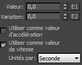 Cliquez avec le bouton droit sur les doubles flèches Valeur pour remettre le paramètre à 0.0, puis activez Utiliser comme valeur de vitesse. Conservez la valeur par défaut (Seconde) du paramètre Unités par.