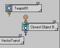 Vous allez à présent rendre l'opérateur plus complexe en reliant le vecteur de vitesse à l'orientation de l'icône de l'opérateur. Il s'agit du petit carré au niveau de l'origine de l'univers qui a été créé lors de l'ajout de l'opérateur Icône de données.
