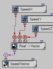 Dans la première partie de l'exercice, vous allez créer un opérateur qui définit la vitesse des particules à l'aide de trois valeurs numériques. La création et la modification des propriétés des particules s'effectuent en mettant en relation différents sous-opérateurs dans la fenêtre de données. Dans cet exemple, vous allez utiliser le sous-opérateur Scalaire.