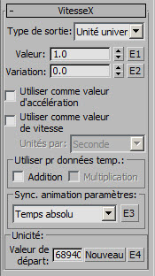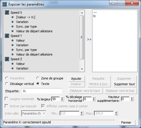 Ses paramètres s'affichent dans le panneau déroulant Vitesse X.