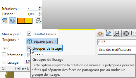 liste déroulante Séparer par, activez l'option Groupes de lissage.
