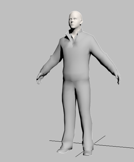 Le modèle est un personnage appelé CMan créé par aXYZ design. Dans cette leçon, vous allez utiliser la fonction Eplucher pour créer les clusters constituant le vêtement principal du modèle. Ce modèle est une peau de personnage type: les parties vêtement et peau appartiennent à la même surface, en l'occurrence un objet polygone éditable.