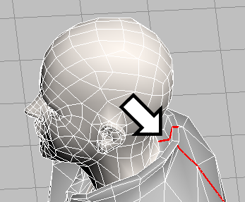 Tournez à nouveau pour obtenir une bonne vue de l'arrière du col. Assurez-vous qu'aucune arête sur la tête n'est sélectionnée et que les deux arêtes de la veste à l'intérieur du col, juste derrière la nuque, font partie de la sélection.