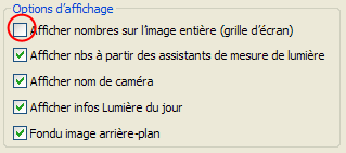 zone Options d'affichage, désactivez l'option Afficher nombres sur l'image entière (grille écran).
