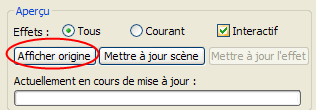 groupe Aperçu, cliquez sur Afficher origine pour visualiser la scène sans les données d'éclairage. Cliquez sur Afficher effets pour afficher à nouveau les données.