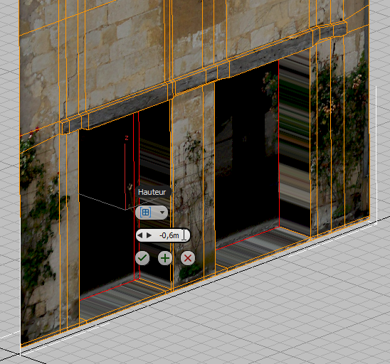 La modélisation du linteau est un peu plus compliquée que celle des fenêtres. Néanmoins, à l'instar des fenêtres, les portes ne sont que de simples extrusions.